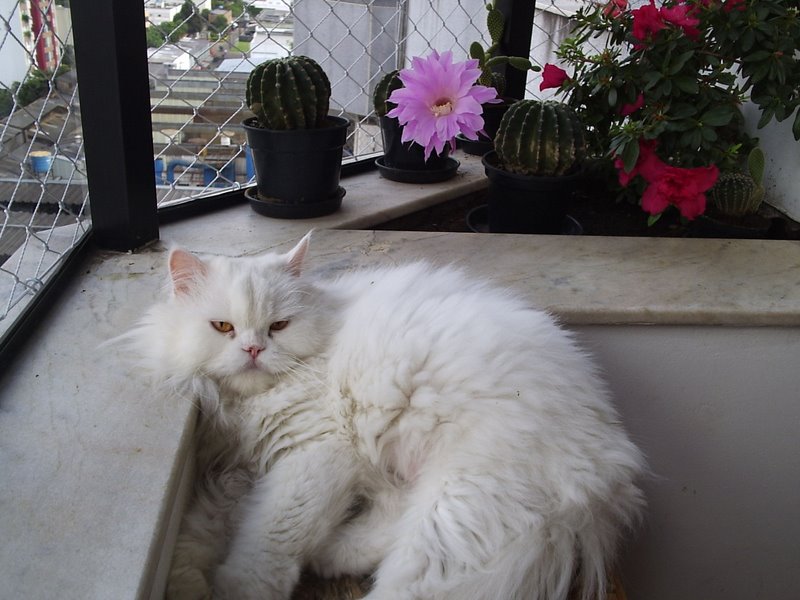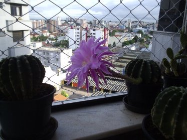 I have a Brazilian friend whom I first met when she was the American Field Service exchange student in my high school. So it’s been a long time! We were kindred spirits from the start. Nowadays we can enjoy our friendship online, and keep more current with one another. I can even enjoy her husband’s little window garden and this gorgeous cactus flower that blooms just once a year, and the flower lasts only 12 hours.