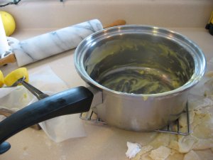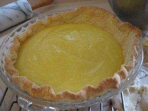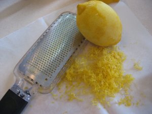 While the shell was baking I started the filling. If you want a lot of lemon flavor, be sure to add plenty of lemon zest. I used a tablespoonful. For years I struggled to get the precious peel off of my lemons with an old and dull grater. Eureka! The microplane, now one of my most beloved tools. See how it can take off the finest shreds of peel, without any of the bitter white part. And it does it without any strain to the old elbows.