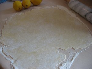 Trim off the excess and ragged edges of dough. How much is excess? When you look at the pictures below you’ll realize that I don’t really know the answer to that.