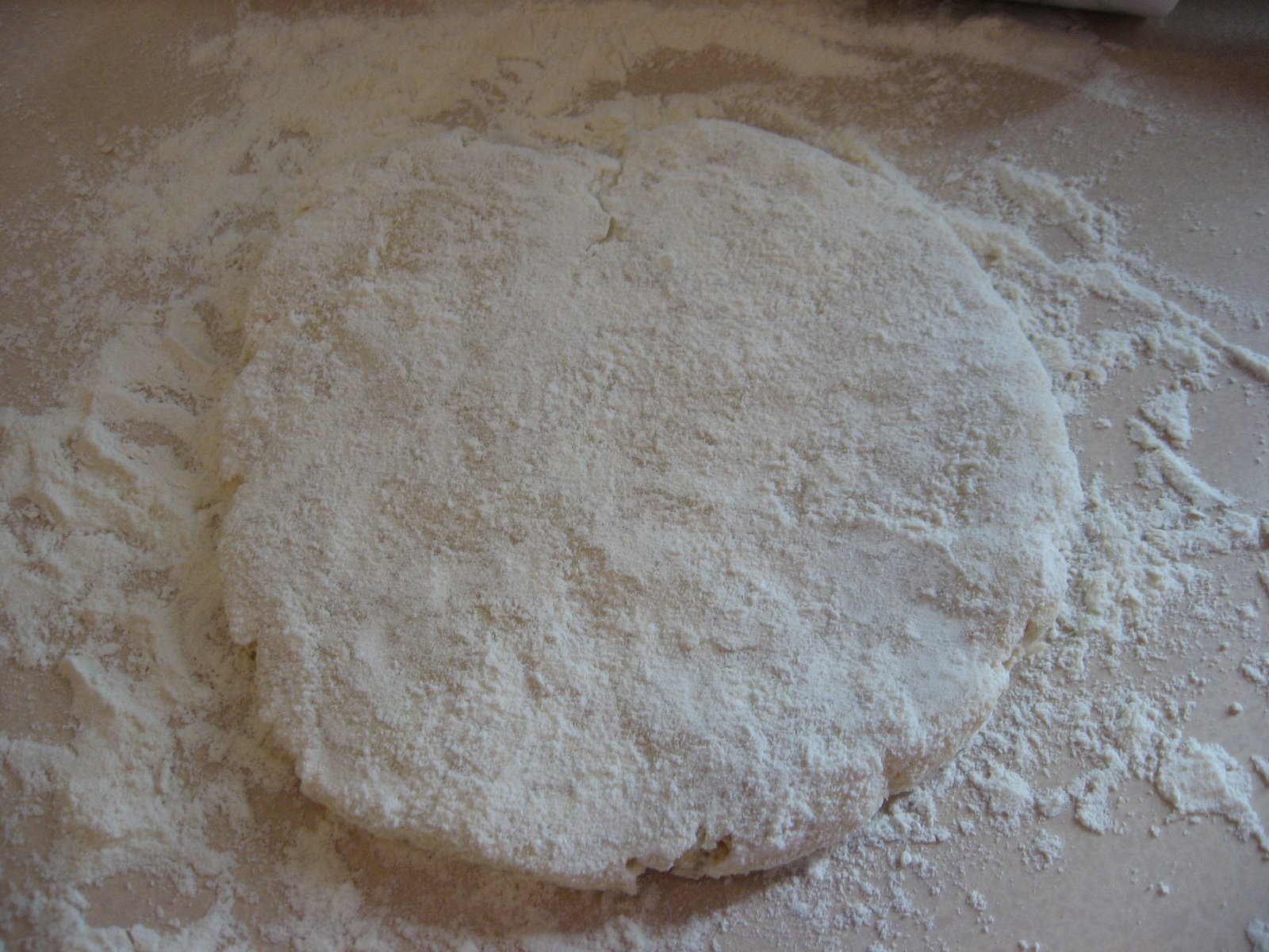 I knew I was going to need all that flour on my dough “pancake” because I had added a few too many drops of water, making this lump a bit moister than ideal.