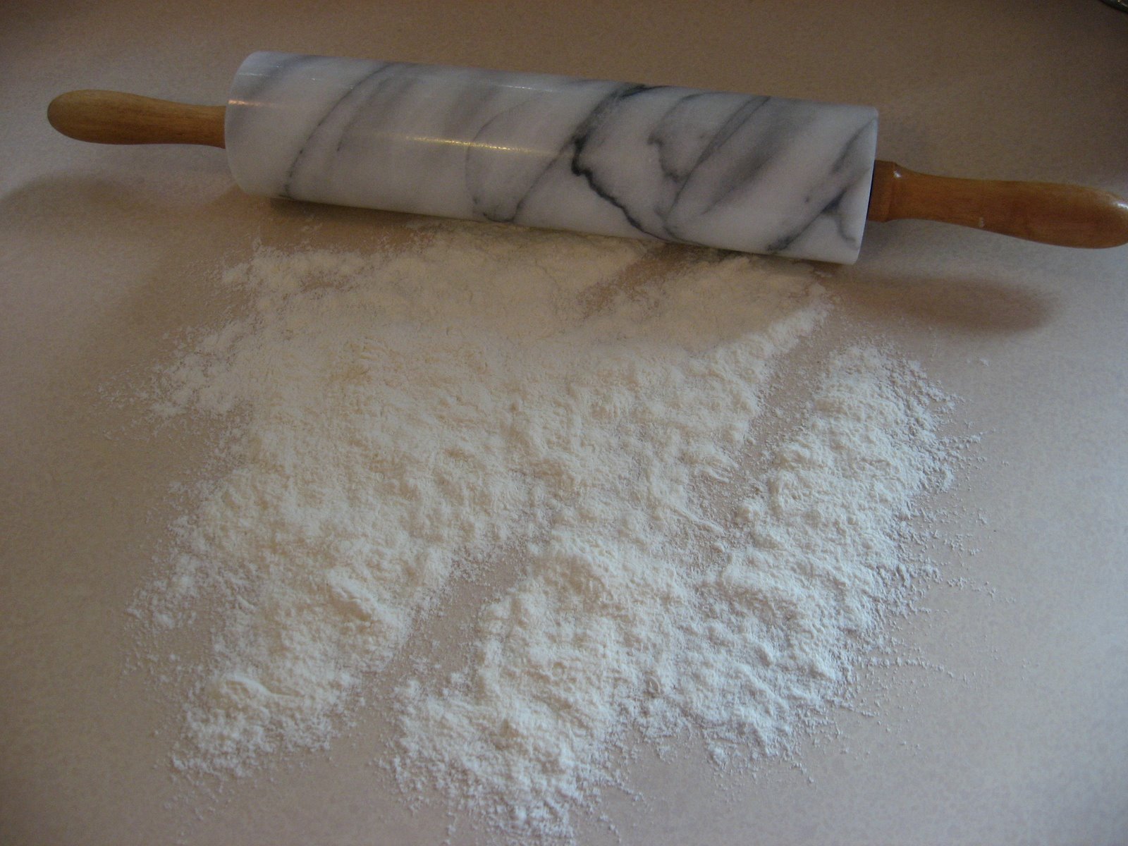 When I first started making pies, I used a pastry mat and a rolling pin cover to keep the dough from sticking and tearing. After I found this lovely marble rolling pin at a garage sale I stopped needing those helps. Maybe it was a coincidence, and it was just that I had by then developed a feel for pie dough. It is pure pleasure to use it.