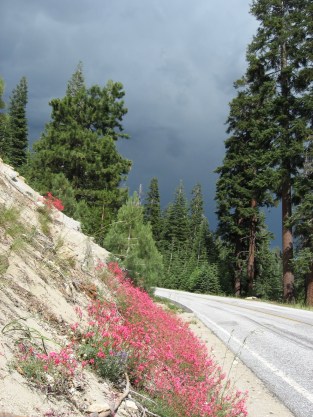 My picture doesn’t do justice to this plant that makes a soft lavender haze along the roadway, breaking the monotony of green trees and and grey pavement. Somehow from your car the impression and depth of color are more intense, though pastel. As you may remember, I called it purple haze or lavender mist. I just saw it last week in the more southern Sierras.