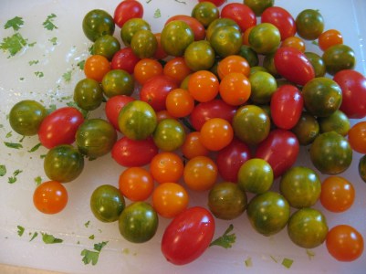 What can one do when the garden produces only a few regular tomatoes and a thousand cherry tomatoes? It just this week occurred to me to make salsa with them.
