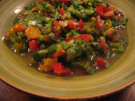 He thought it was a fantastic recipe. Also he said he was surprised at how mild the Serranos were. Meanwhile, I was enjoying the flavors, thinking it was the best salsa I’ve made yet, as my fingers were burning and beads of sweat were forming on my red face.