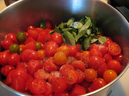 Mr. Glad and I have been eating bowls and bowls of cherry tomato salad, but are inundated with many more of the tiny love apples than we can consume fresh.