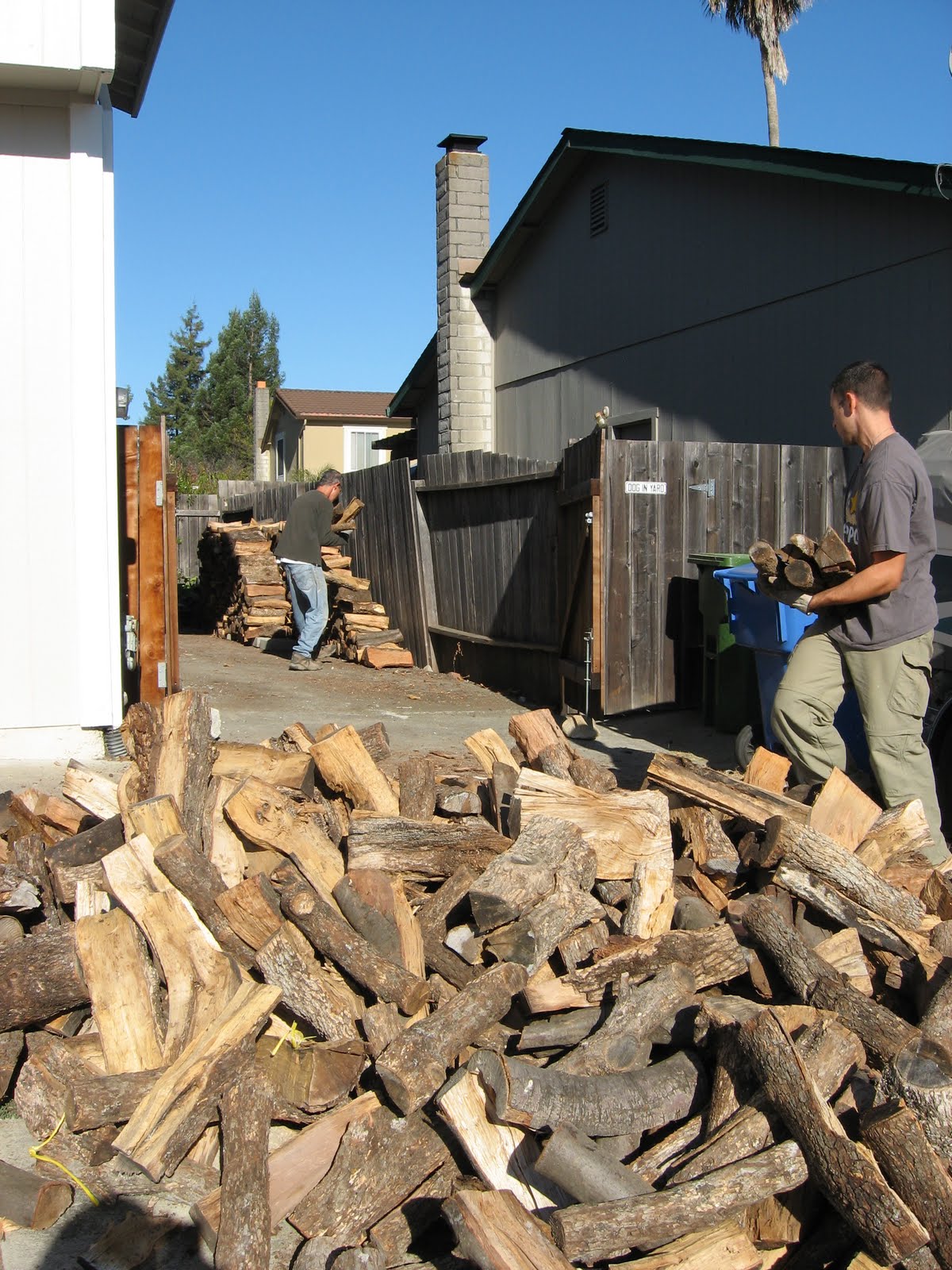 Yesterday we got a big load of fuel delivered, and P. was around to help carry and stack.