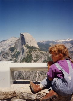 Kate was dressed in our family’s traditional outdoor clothing when we took this picture of her at Glacier Point nine years ago.