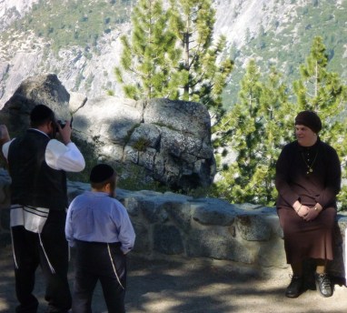But Glacier Point was not the last view; we always love to see things from Washburn Point as well; it’s just a bend or two of the road back from Glacier Point. Additional exotic members of the Family of Man could be viewed there, like Hasidim taking pictures.