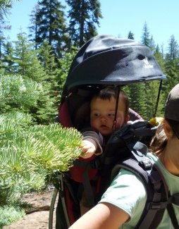 Nowadays there is a one-week limit on camping, and it’s a rare person who can do the phone work and combine it with luck enough to secure a site or a cabin in Yosemite Valley, where whole campgrounds have been eliminated since our little family started camping there in the 70’s. Pippin’s mother-in-law is one of those dedicated and generous people, and this year Mr. Glad and I benefited from her labors and came along as the second set of grandparents, joining Baby Scout and his parents.