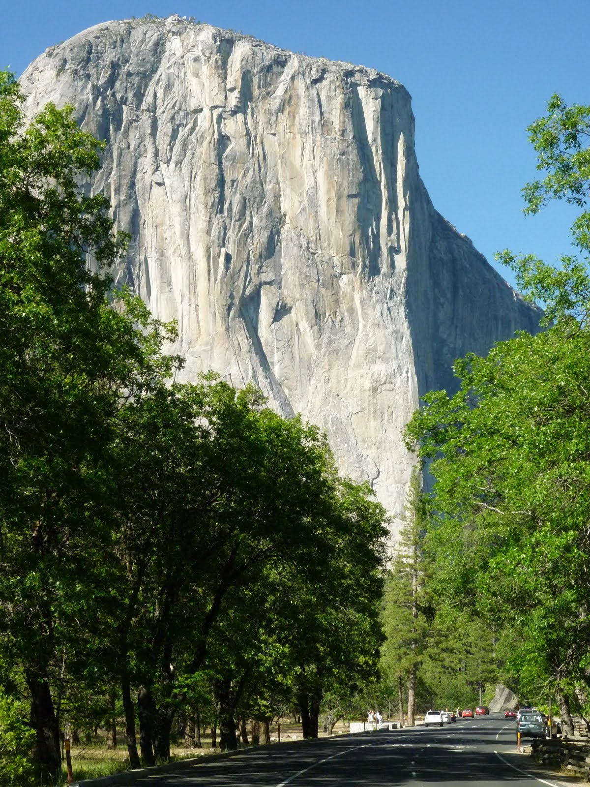 You can also see down to El Capitan, that mass of rock one often sees from the bottom on entering the valley. It’s in the upper center of this photo, sloping down to the trees.