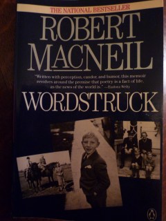 A friend gave me a used paperback copy of Wordstruck, a memoir by Robert MacNeil, of the MacNeil/Lehrer NewsHour that he hosted in different formats from 1975-1995 on TV. I had heard his name during those years, but our family didn’t watch television, so we didn’t pay attention until he co-authored the book The Story of English in 1986. It was quickly made into a TV series that we watched on our video player at home some time later.