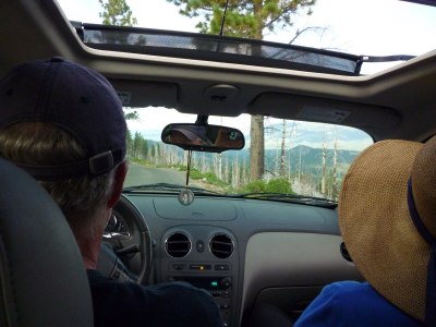 On the way back I took my own photos, so among other things you can see my view as our little excursion, and our mini-vacation, drew to a close. You can’t see what a contented vacationer I was; you have to use your imagination for that.