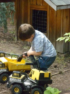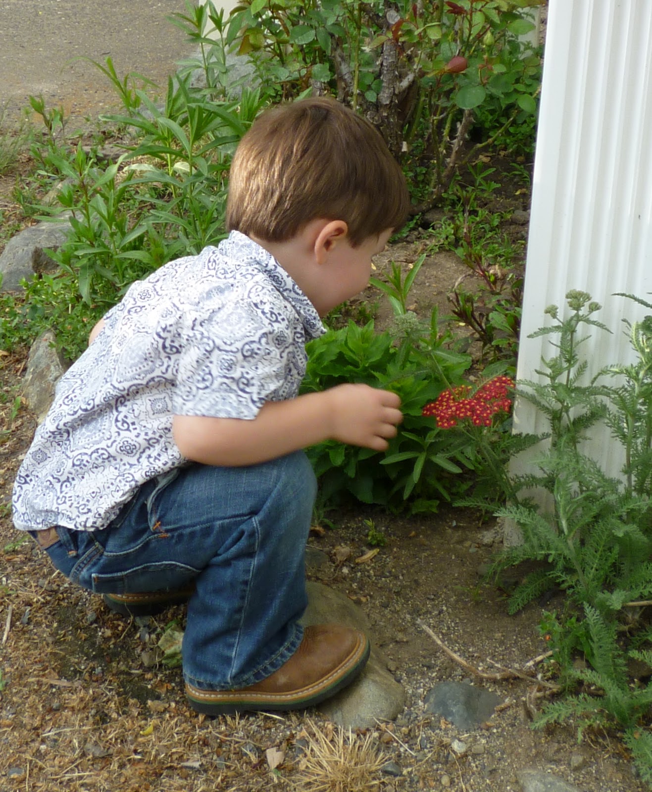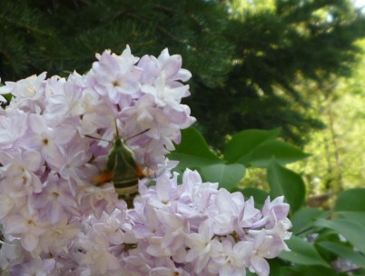 Some things we took notice of together were the birches in the back yard, and what I think was a moth working the lilacs. I took a long movie of the whirring creature but in it his wings are still moving too fast to see clearly.