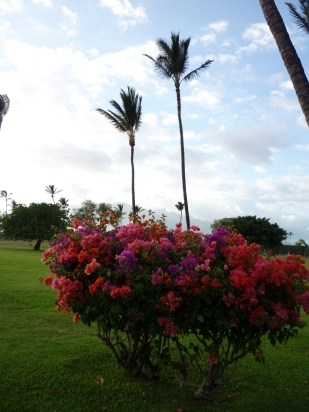Right out our back door there were spider lilies and red ginger, and multi-colored bougainvillea trained into shrubs. Along the roads hedges of hibiscus or bougainvillea or even more extravagant flowers let us know we were in the tropics.