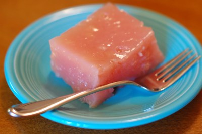 Here now is the current version of my gelatin salad. I have played around with it over the years, using coconut milk and pineapple juice at times, making a smaller batch, and adding fresh peeled orange sections when I had them. So it is definitely flexible — try it with your own preferred flavors or handy ingredients.