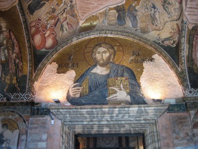 And the hymns sing of how they all, long since passed from this earthly existence, are even now “in the Land of the Living.” Thomas Hopko in The Winter Pascha mentions a church near Constantinople where a huge mosaic of Christ is named: “The Land of the Living.” I found a photo of it (above).