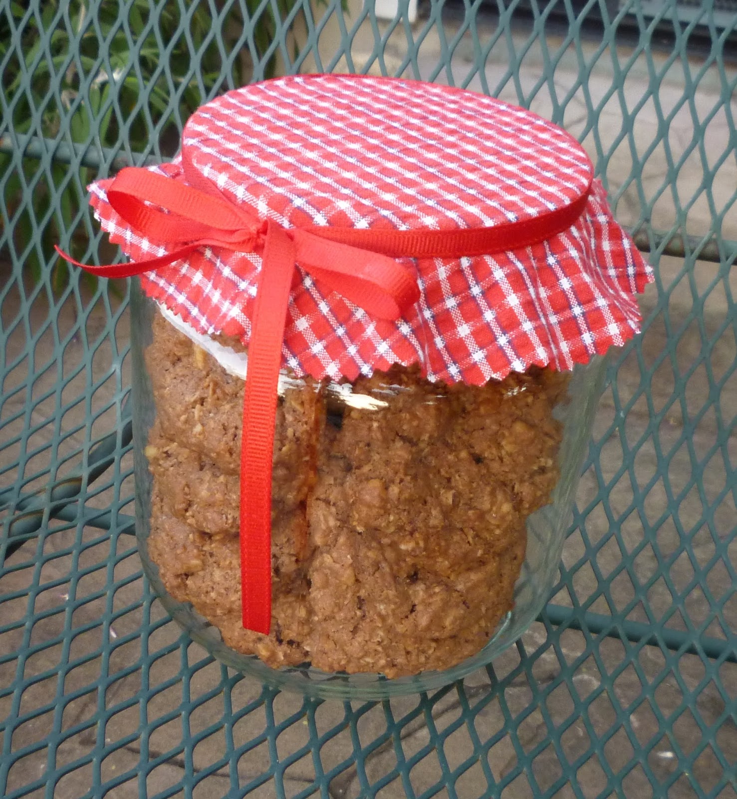 I covered the scratched lid of a half-gallon jar and then packed the chunky cookies in that. And I took along some of the cute cookies, too.