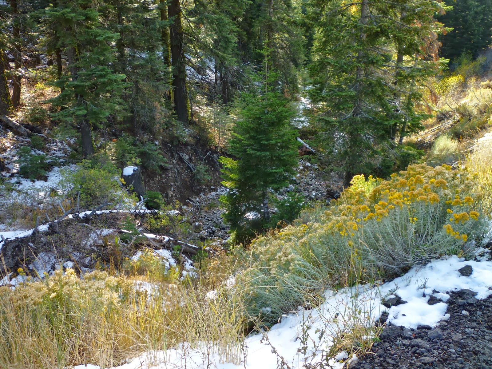 And yes, there were the grinding mortars in the rock, empty of anything but leaves at this time of year. Do children still pretend to be Indians grinding acorns in them?