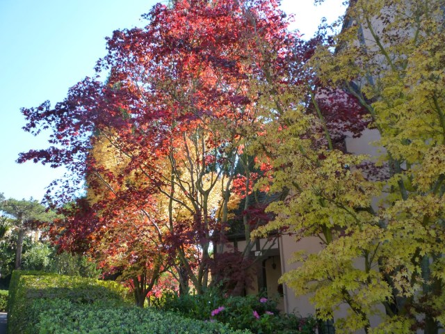 The weather was summery, and we seemed to walk always up, and up. It felt good to stop frequently to snap pictures of fall color or late summer flowers. Eventually we arrived at the first house of our father’s on our list, on Santa Barbara Avenue.