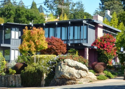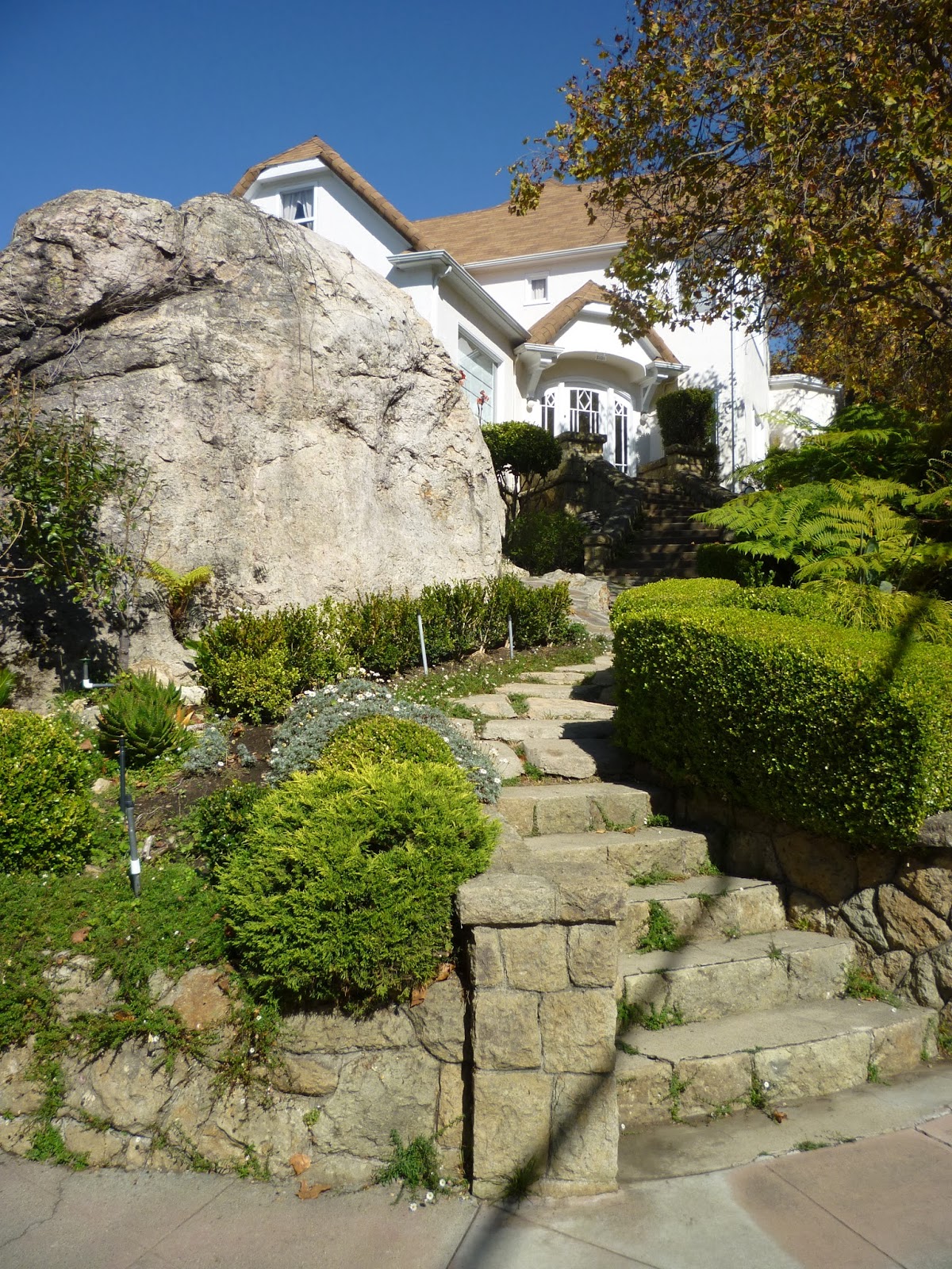 More rocks! This house, though modern in design, has a very traditional and unchanging boulder to distinguish its front yard.