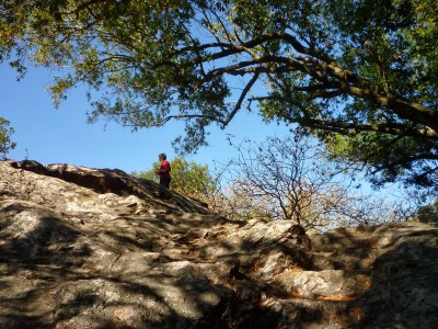 We circled back to Mortar Rock, just around the corner from Indian Rock, and wandered there longer, just as we used to play there longer in our childhoods. More of those stone surfaces are easily climbable, and Grandma always felt better about us going by ourselves, because we didn’t have to cross a busy street to get there.
