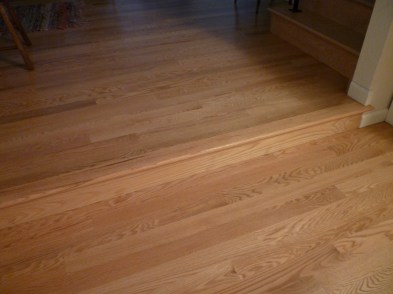 All this time guests went on stumbling and occasionally going all the way down, as we envisioned broken legs or noggins and how ashamed we would be of our negligence if that happened. Recently, when we were waiting for one of the contractors to tell us exactly when he was coming to do the job that it turned out was too small for him to even use his good manners on, I applied zig-zags of thin red masking tape. We were expecting first-time guests and feared for their safety. The tape aged and cured while we came to realize that Something Else must be done.