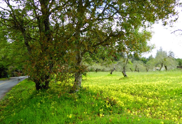 We met at her house, where across the road I found sourgrass – Oxalis pes-caprae – in abundance. I didn’t know until I looked up the botanical name just now that it is considered a noxious weed around here. Its bright color drenched with rain made it reflect all the midday light.