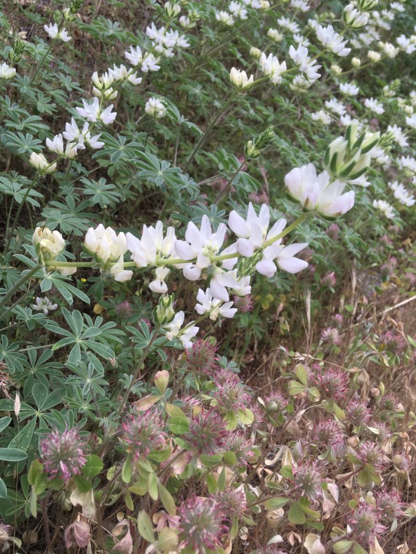 But those pinkish flowers under the lupines appear to be clover. It covered the dry slopes around our cabins.