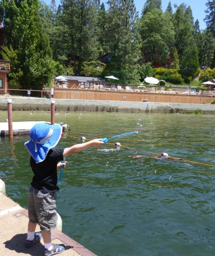 For a couple of hours Sunday Maggie and Annie played on a paddle board in Bass Lake while the others of us watched them, or watched Liam with his bubble wand. We might have rented a boat but they were all taken. Then we ate ice cream; it was hot!