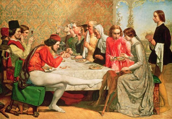 I had in the past become interested in John Ruskin from reading Alain de Botton’s The Art of Travel, and I enjoy William Morris every day as I eat my breakfast and dinner on placemats of his enduring design. (But the picture below is of a special party.)