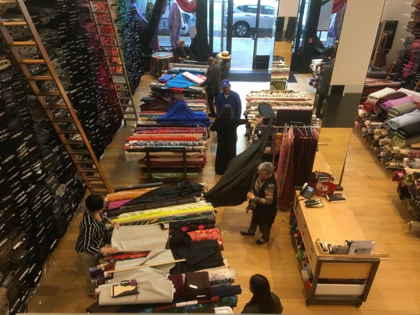 We did not talk about our next activity as being any kind of logical continuance from the museum, but I think it was. As on our previous trip together to the big city, Lorica had business at Britex Fabrics, the kind of store people drive a hundred miles to shop at. You can get just about any textile you need there, in the color you want. The staff really know things and come alongside.