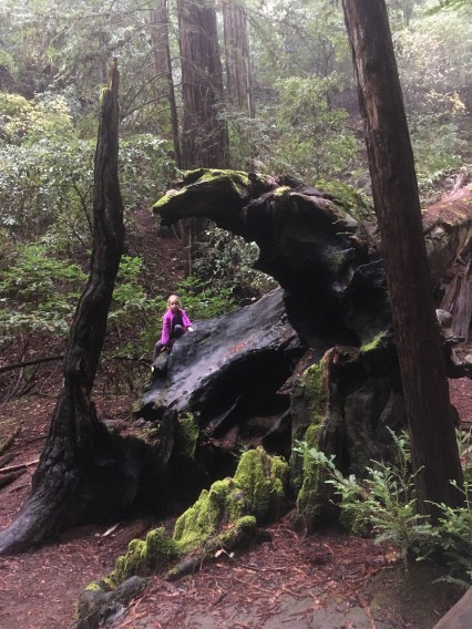 I didn’t have it in me to go with everyone to San Francisco, the aquarium etc. at the Academy of Sciences on Saturday, and to Fort Point, so the smiling picture of Raj I also stole. But Sunday after church Kate’s and Pippin’s families and I did go to the redwoods! It was a dreamy time to go, almost winter and after several steady downpours had removed every trace of dust from the big trees, and both Pippin and the Professor helped me in my ongoing botanical studies.