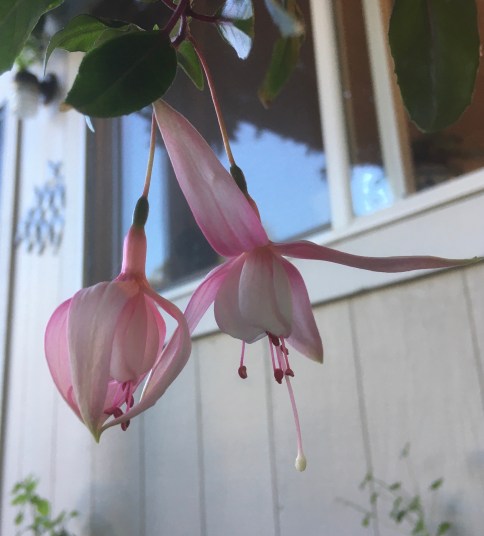 My garden and climate are not the friendliest for fuchsias. Not enough moisture, to start with. And to make things worse, I had them in a pot where they got no morning sun at all, but hot sun in the afternoon. Exactly backwards, as I just read in the Sunset Western Garden Book.