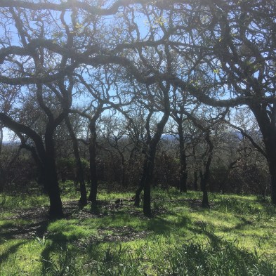 Some trails in the park are still closed since the fire; I made note of that when I printed a map last month, but I also forgot to bring the map. So I wandered a lot and ran into two dead ends where the trail was closed, making it seem like I had walked for much longer than an hour. There were plenty of green trees and shrubs, and lots of new ground cover including several low-growing wildflowers. I was surprised to see so many on this last day of February; maybe the warm days we’ve had recently encouraged the bloom.
