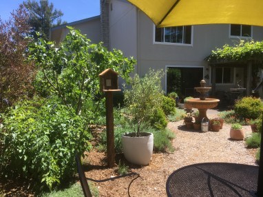 Back when my new garden was in its immaturity, and gave the impression of rolling hills of orangey mulch, with lonely plant starts like trees on the prairie, I knew that I wanted an icon there, to honor the presence of Christ and his saints. I invited artistic Christian guests to sit over dinner in the garden and discuss the eventual placement of the stand for the icon that I didn’t own yet; I didn’t know at that point whose iconic image I wanted.