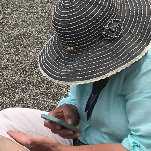 Daughter Kate and her family are still here, and Pippin’s family also came to visit for a couple of days. We women took the kids to the beach, one that is becoming a favorite; it’s a little farther to drive to, but there is no undertow or other dangerous feature, and the sand is tiny pebbles. It doesn’t blow in your face and is much much easier to deal with at picnics — or in diapers.