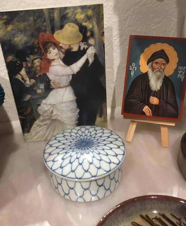 The cluttered environment has disturbed me inwardly, I always knew that, but when I managed to open up floor space and dresser tops, and whittle down the mass of unpacked boxes to take up less and less space in corners… why, I felt like a new person, becoming civilized! It was very calming.