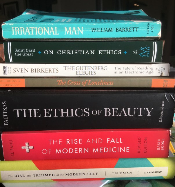 During a 20-minute phone call with a friend last week, I mentioned all of the books pictured above, only one of which I have read, long ago. After he asked me about a couple of them, “Did you finish ____ ?” I blurted, “I don’t read books, I only buy them!”