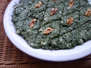 The origin of pkhali is the Republic of Georgia. Though I have a Georgian acquaintance at church, I found the recipe on The Traveler’s Lunchbox blog, about a year ago. I’ve made it several times since then, at least twice using frozen chopped spinach, and most recently with fresh spinach.