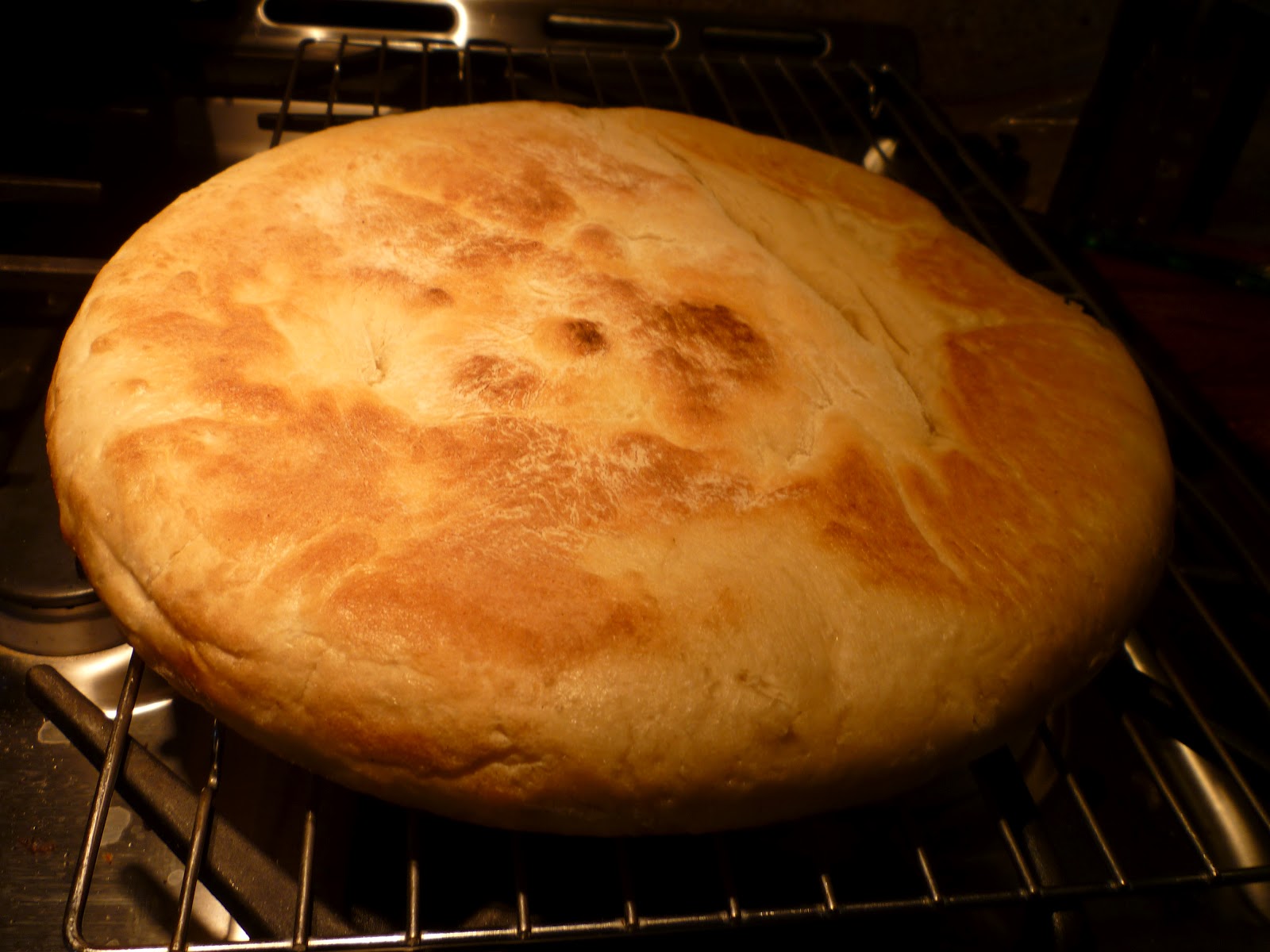 It was the first time I’d tried making it at my house. My loaf came out a little thick compared to what I think are the best versions I’ve eaten, because I didn’t notice I was supposed to make 2 loaves with the dough, and I put the whole thing into one large skillet. But it was wonderfully chewy and flavorful all the same, and my tasters loved it still warm from the pan with some of the pkhali spread on.