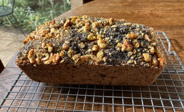 The next day, which was this morning, I thought I would just bottle up the broth and put it in the freezer, and get on with my sorting project. But one thing led to another…. I needed to wash the big pots and my breakfast dishes, of course. The cooked ginger went into the food processor, because I can’t bear to throw it out, but always use it to make puddings or breads. I decided to make bread with my ginger paste right then, so I found a recipe for zucchini bread to work from, and substituted ginger for zucchini.