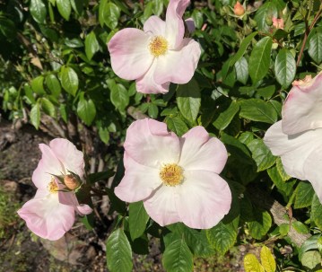 It has been years since I visited what I call The Rose House, though it probably takes less than fifteen minutes for me to walk there. What I found when I saw it last week was that the whole rose garden in front has been cleaned up, and all the bushes pruned. On the corner opposite, a man was standing in his vast flower garden; I didn’t see him at first, as I paused to admire a giant cistus in bloom, until he said, “It’s a beauty, isn’t it?” After a brief chat I said I had come that way to check out the roses across the street; he told me that the owner lives there himself, and has for a long time. So the reason for the previous unkemptness remains a mystery.