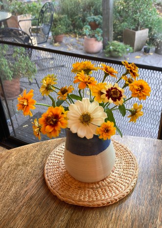 As I live on the other side of the world, I am enjoying the encroaching warmth and the growth that accompanies it. Your flower arrangement looks very cheerful!