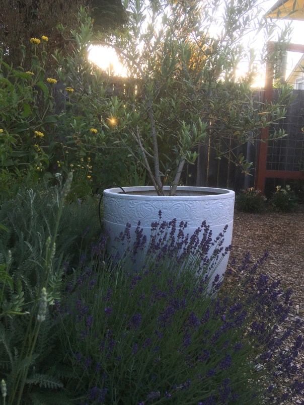 The landscape designer who advised me back then not to plant an olive tree in the ground, because it would grow out of scale and become overbearing in my little garden, suggested I keep the ones I already had and just put them in larger containers; she added that I would need to trim the roots every couple of years to keep them healthy in the confined space.