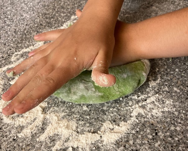 After blanching to neutralize the sting, we removed the leaves and incorporated them into an eggy pasta dough.