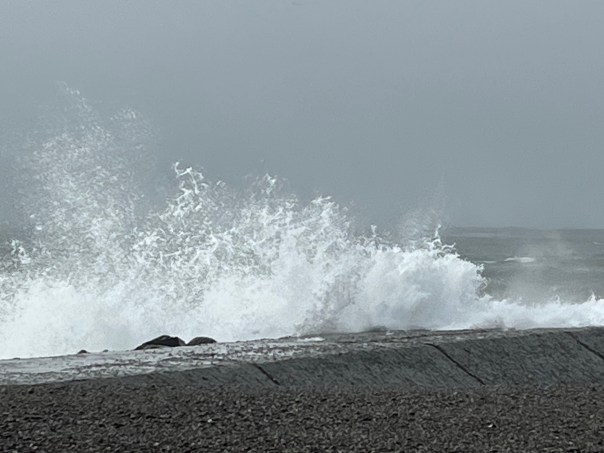 When we arrived it was truly a gorgeous day. No wind, and plenty of sunshine and blue skies. The long road to the parking lot next to the beach was closed to cars, with no explanatory signage. Maybe it was because of the king tides still happening, which make these already dangerous beaches even more so. But we were allowed to walk down, which just gave us more good exercise coming back, so that was okay.