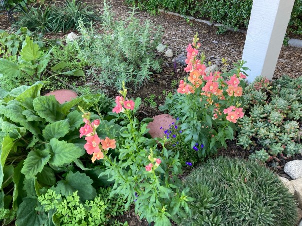 I did see a hummingbird checking out my new abutilon that is in a pot; I wonder if that is a flower that actually offers any drink to the hummers? Seems like they would have to fly upside down while drinking…