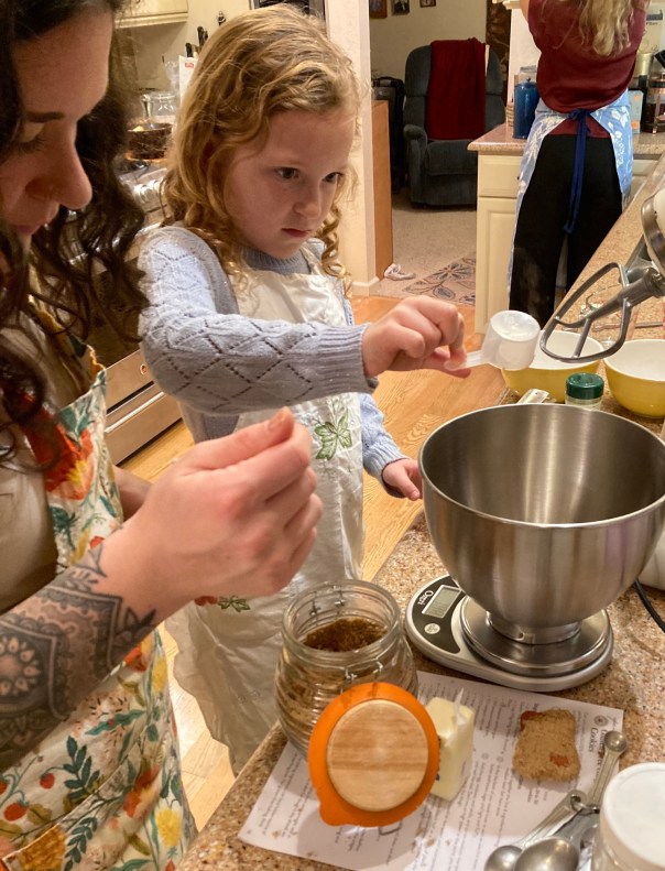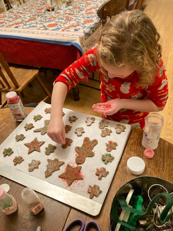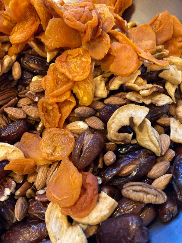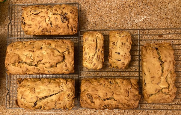 I made Candied Espresso Walnuts, and our longstanding traditional California Fruitcake/Jesus Birthday Cake/Nativity Cake, which I hadn’t done for some years. People sliced from one big loaf for breakfast and snacks here, and I gifted the others. This time I made it with a gluten-free flour blend, which worked pretty well.