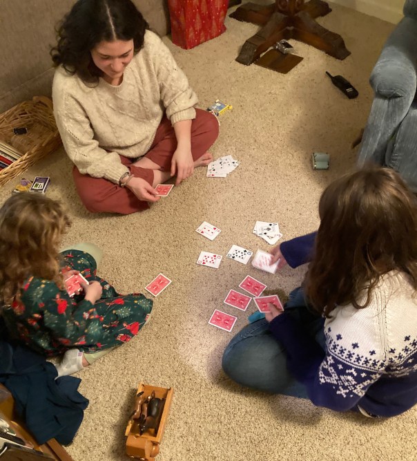 It was a lovely, lovely Christmastime. Soldier’s and Kate’s families couldn’t come this year, but Pearl and Nate and two of their children’s families were able to make it. The youngest child was my great-granddaughter Lori, who is 6 1/2 now. She is a lot of fun!