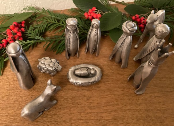 Because of the comings and goings all week, I didn’t wait for Christmas Day or Epiphany, but put the Baby Jesus and the Wise Men in their places at the outset. I’d like to wait until the Presentation of Christ on February 2nd to take down the tree, and to put away the Nativity scene. I’ll need to gather some fresh greenery from the bike path before then!